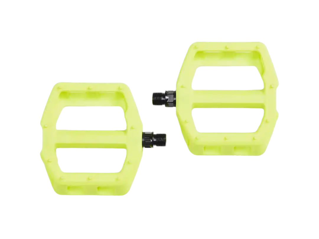 Wszechstronne pedały platformowe z wytrzymałym nylonowym korpusem i bezpieczną powierzchnią, która gwarantuje niezawodną i pewną przyczepność.
